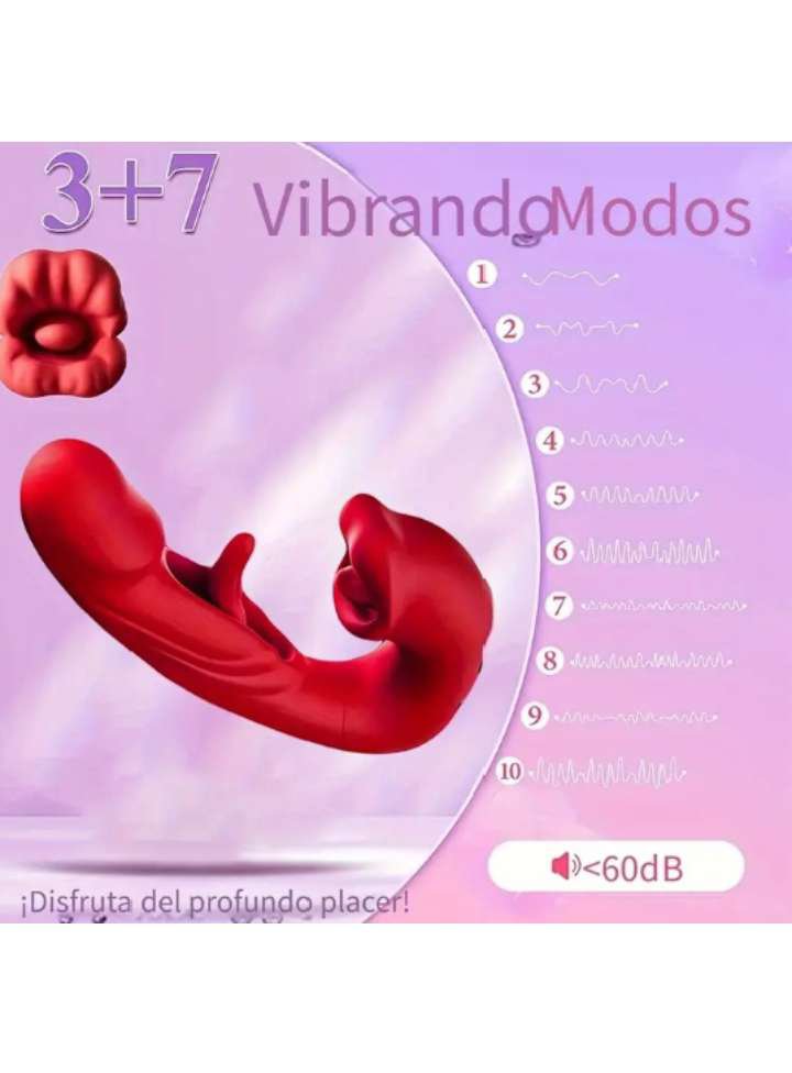 Vibrador recargable a través de USB. Tiene varios niveles de vibración. En forma de boca que succiona el clítoris.
